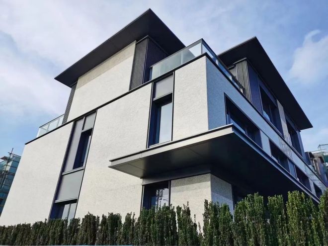 别墅为新亚洲风格,外立面结合了石材、铝板和玻璃幕墙,简约大气、历久弥新的同时,也让起居空间保证了充足的透光率!